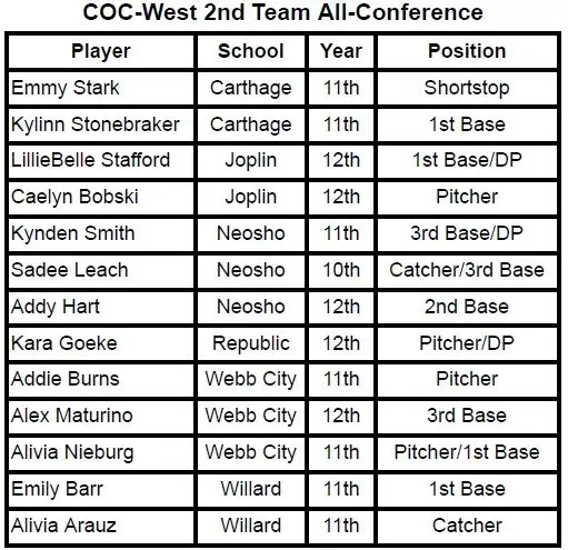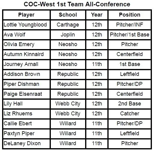 Below is the All-COC West softball team as voted on and submitted by the coaches.