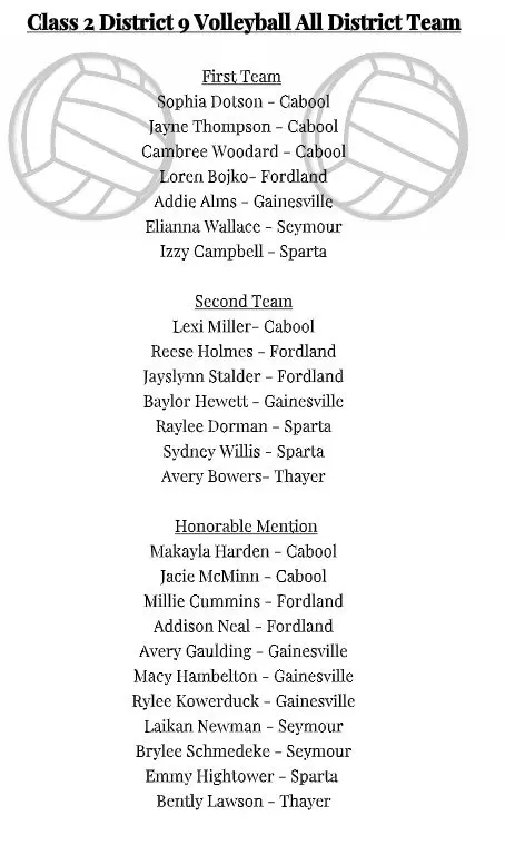Below is the All-Class 2 District 9 volleyball team as voted on and submitted by the coaches.