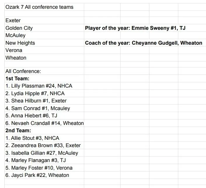 Below is the All-Ozark 7 volleyball team as voted on and submitted by the coaches.