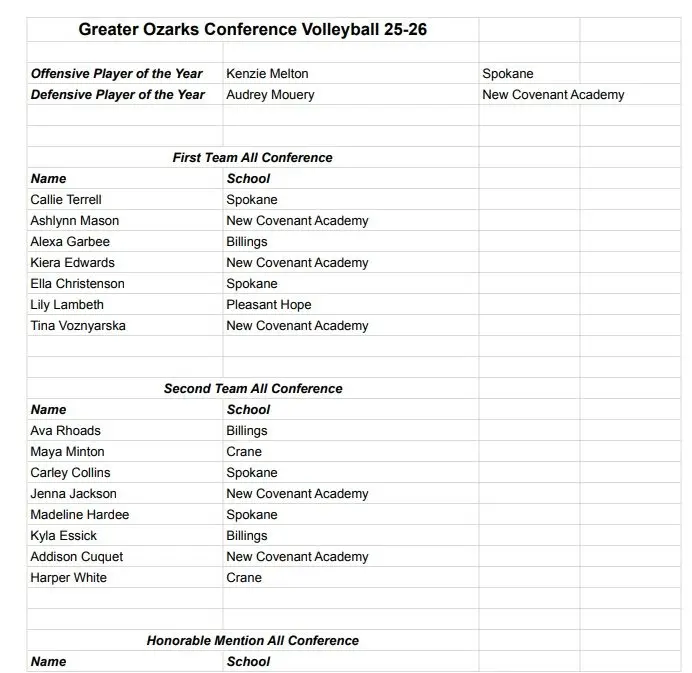 Below is the All-Greater Ozarks Conference volleyball team as voted on and submitted by the coaches.