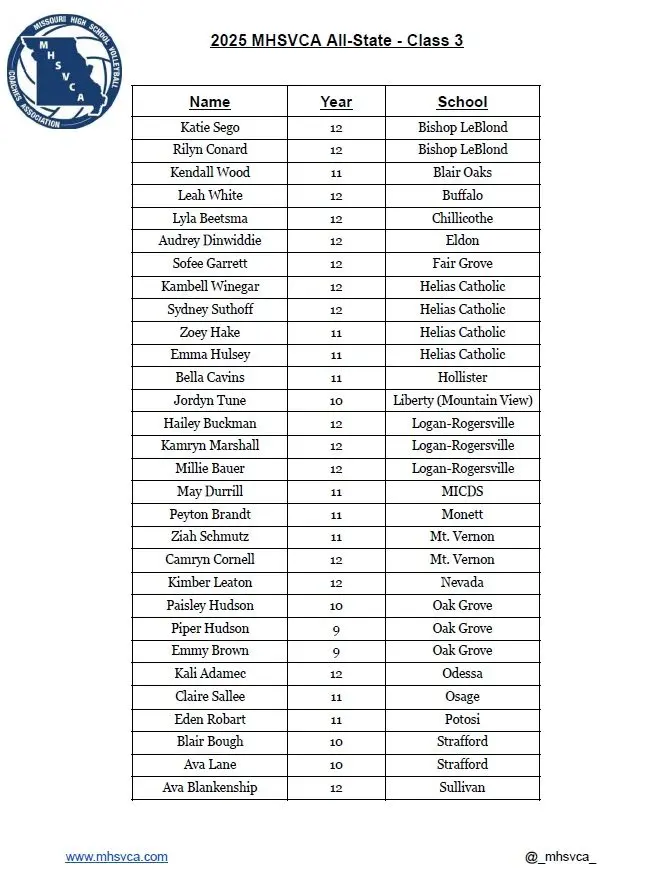 Below is the Class 3 All-State volleyball team as voted on by the coaches.