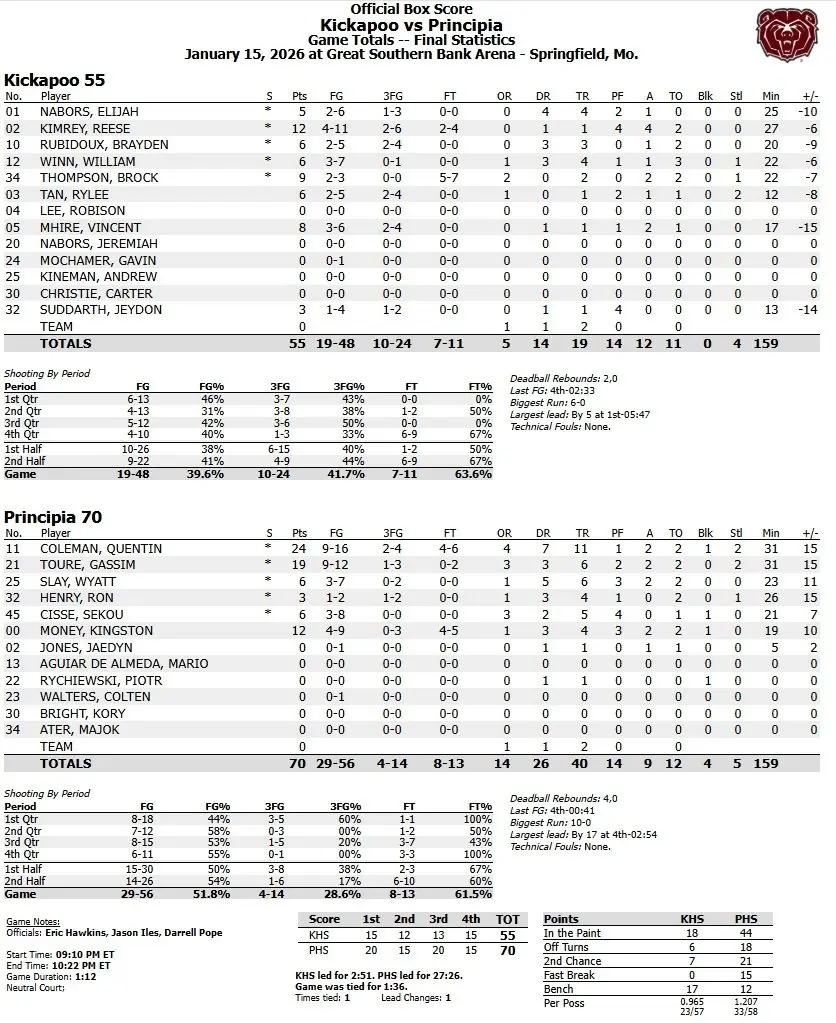 BOX SCORE: Principia 70, Kickapoo 55