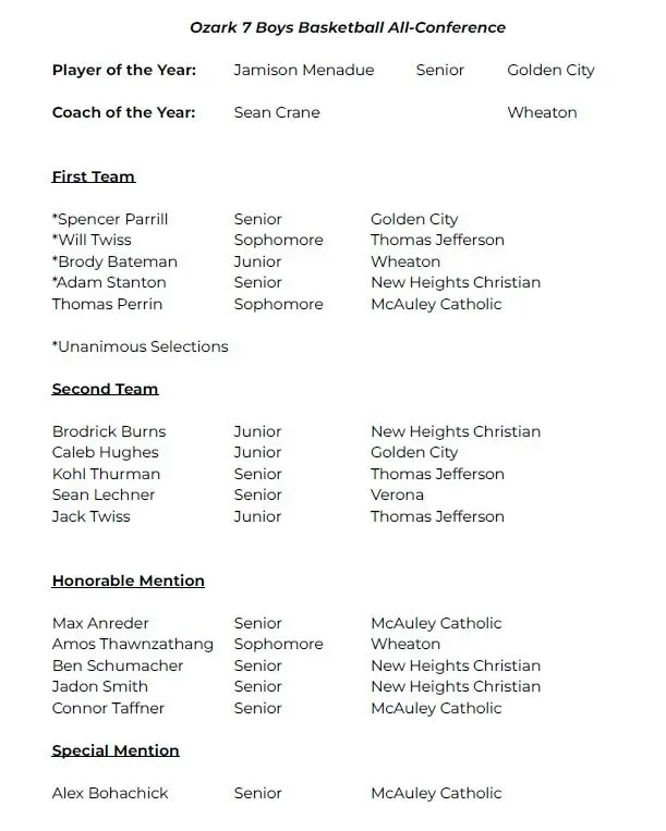 The All-Ozark 7 boys basketball team is below. This team was voted on by the coaches.